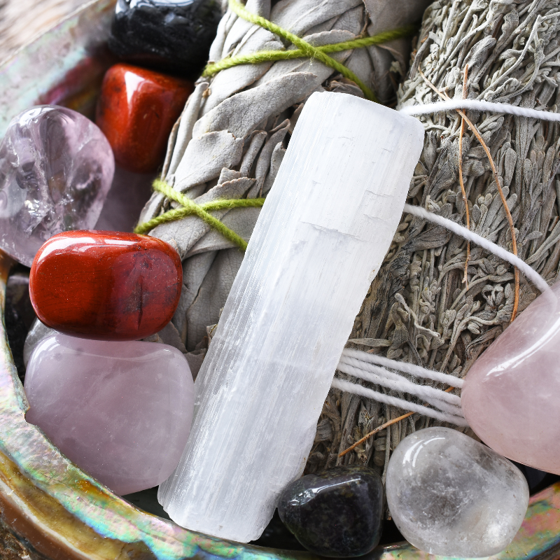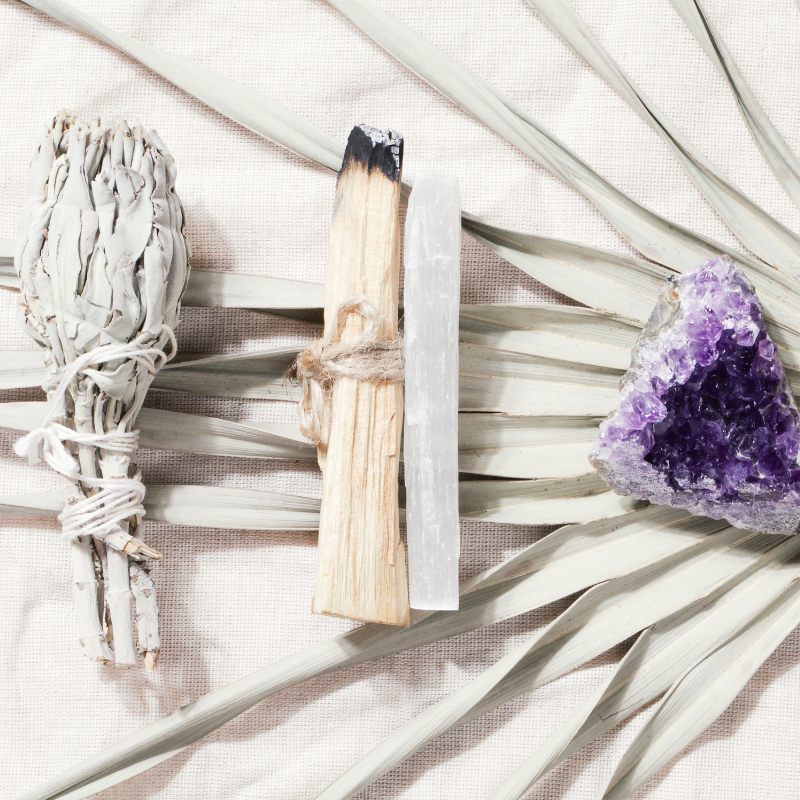 Smudging is an ancient practice that involves burning sacred herbs, such as sage or palo santo, to cleanse and purify spaces, objects such as crystals and/or crystal jewelry, or individuals. The smoke from these herbs is believed to help clear negative energy, promote healing, rejuvenate your personal energy and bring about positive vibes.